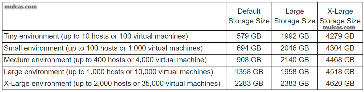 Storage Requirements for the vCenter Server Appliance
