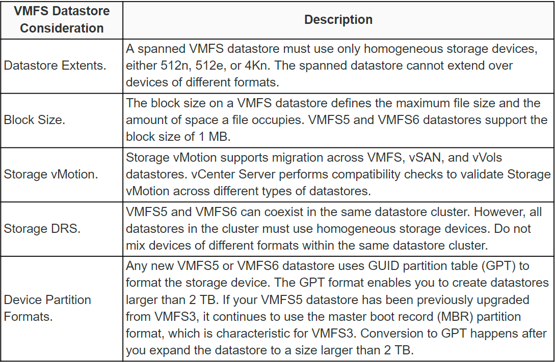 2V0-21.20 - Objective 1.3.1 - VMFS datastore considerations