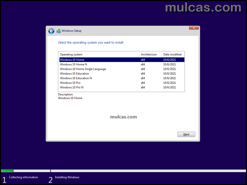 mulcas-21.05.04 - Can’t Select Windows 10 Edition During Clean Installation